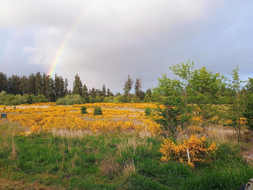 On days when it's not clear, you may catch a rainbow. The following view is of the front yard taken from the front door: